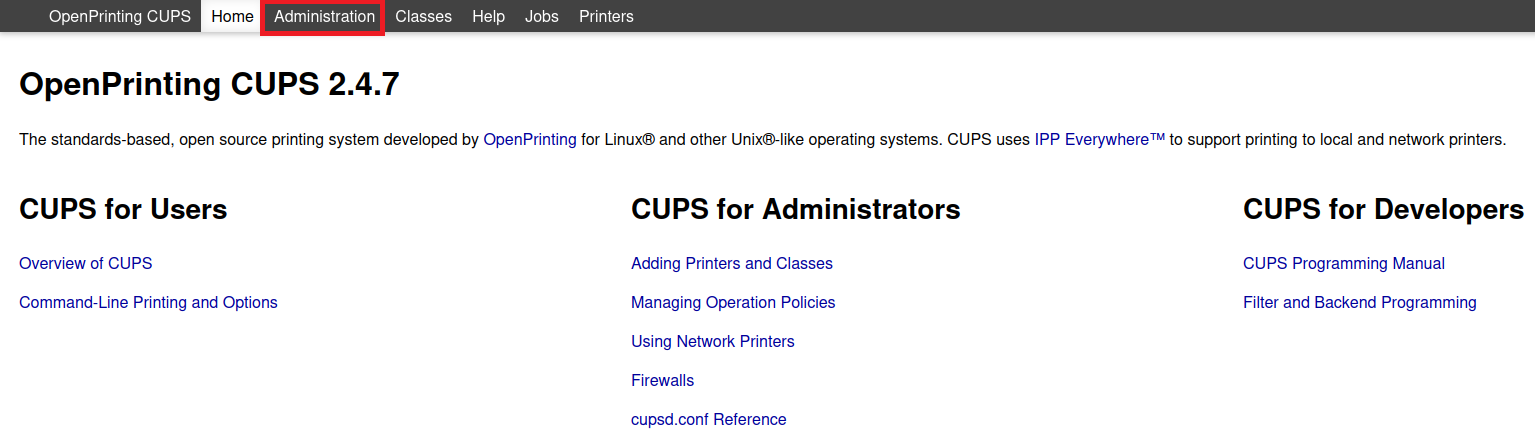 1. If the printer is by chance not installed, then go to Administration > Add Printer and you should be able to find the printer over there.