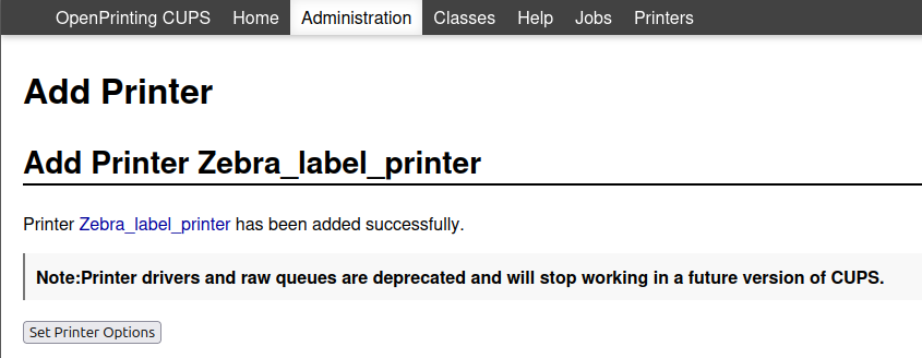 Issue / QuestionHow to add a Zebra printer using CUPS Printing System?