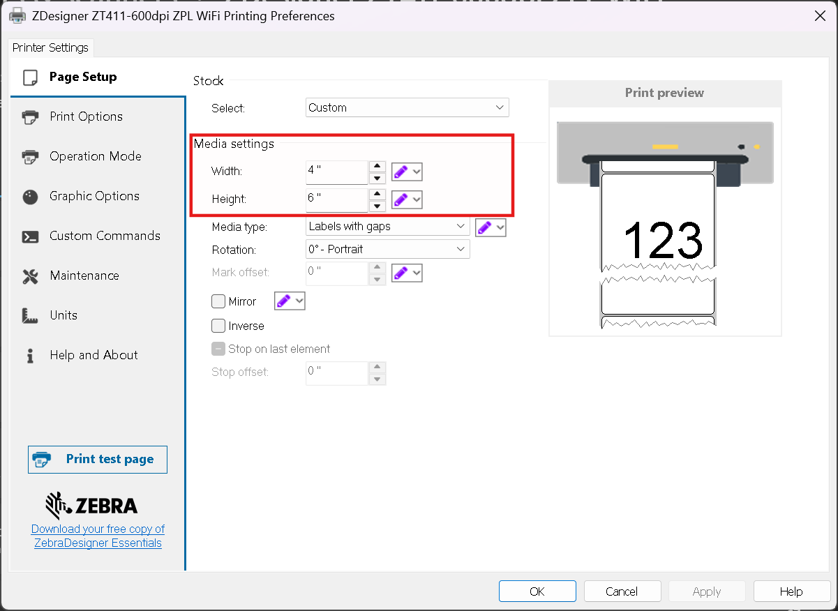 Be sure to have configured the correct media parameters, according to the actual size of your labels.